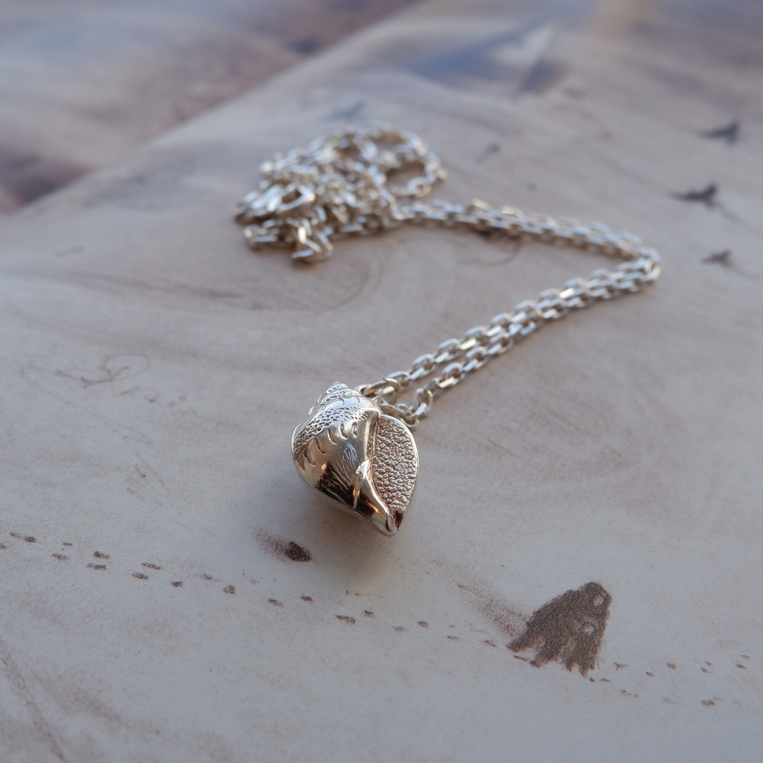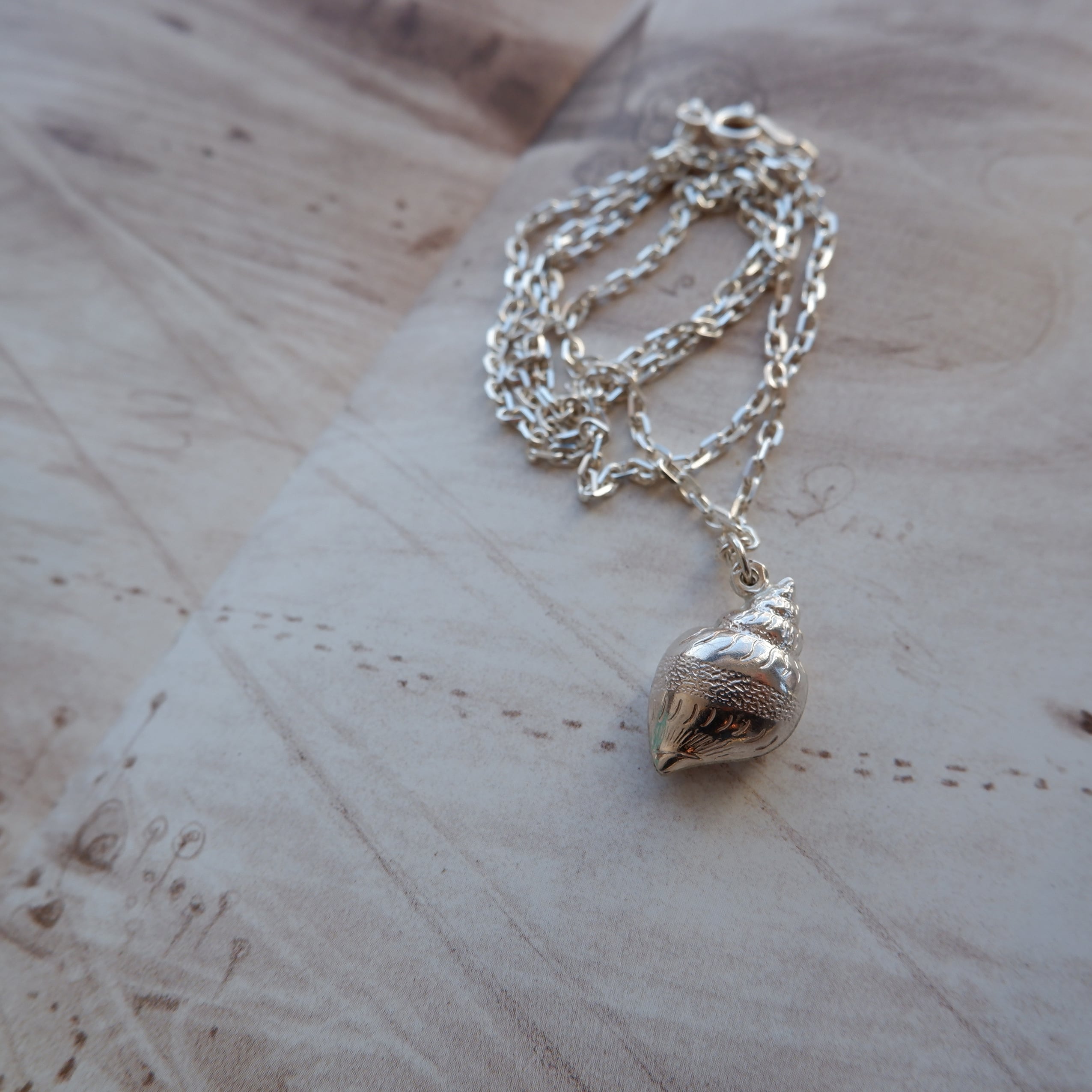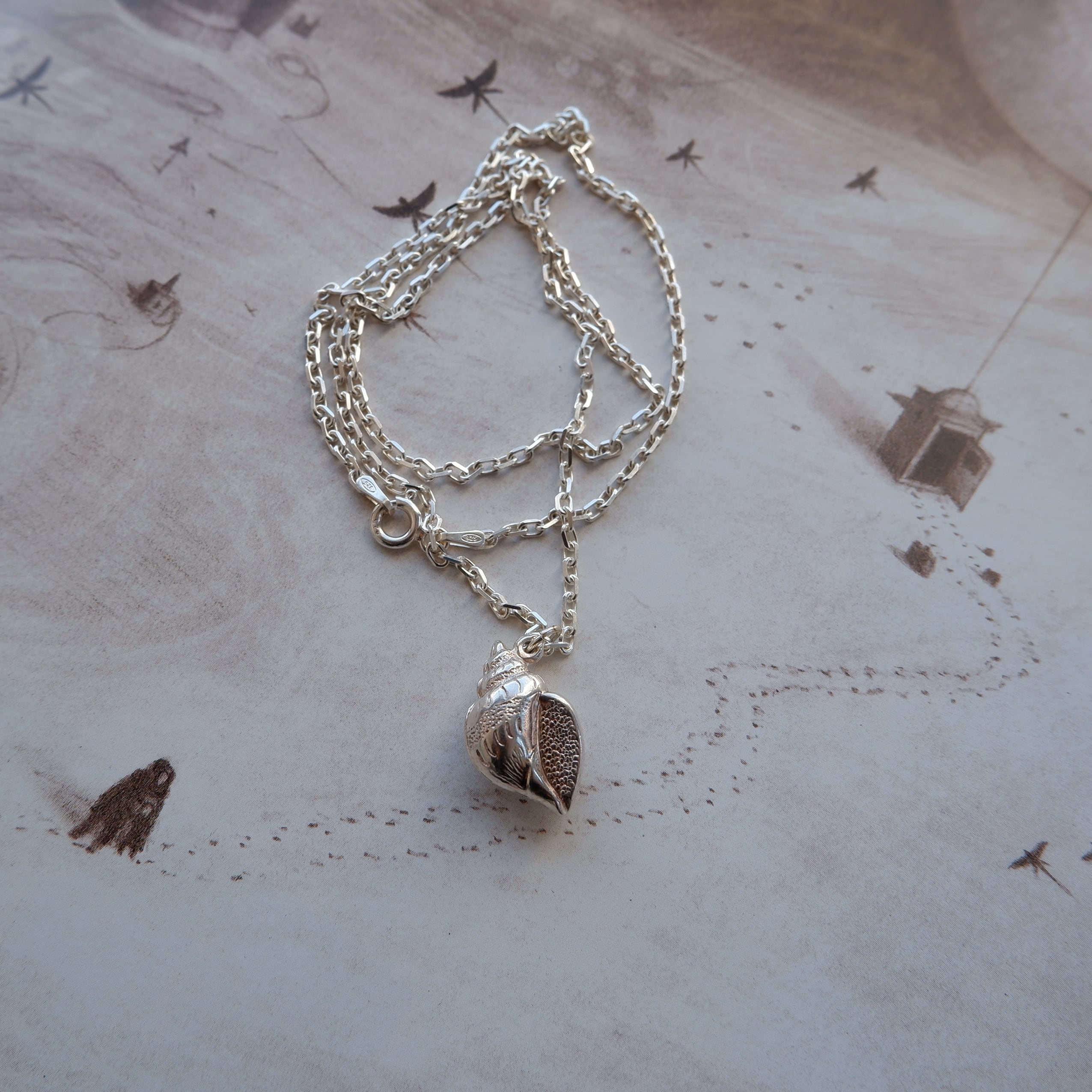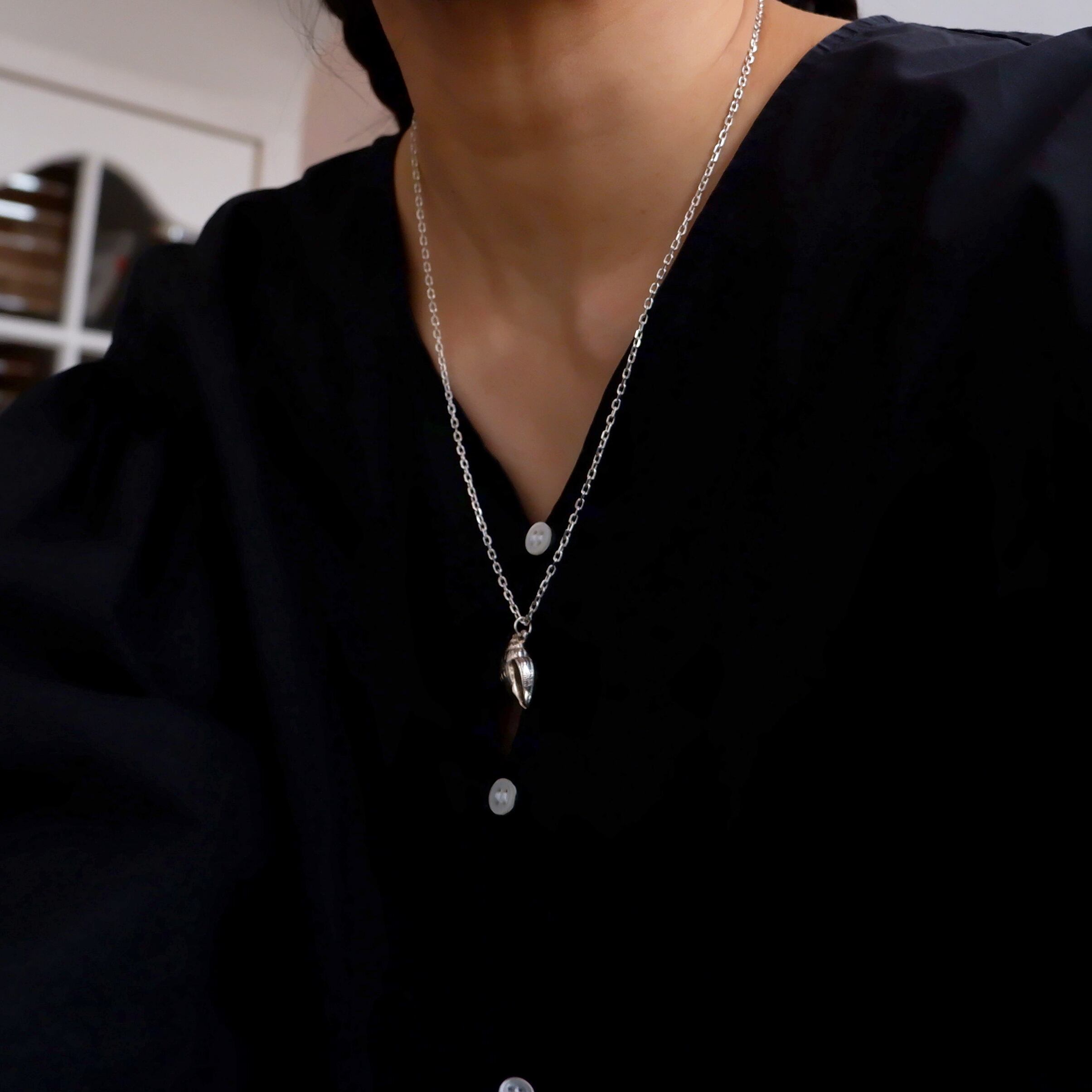 ふっくらとした貝殻のペンダントが揺れる、シルバー製のペンダントネックレスです。