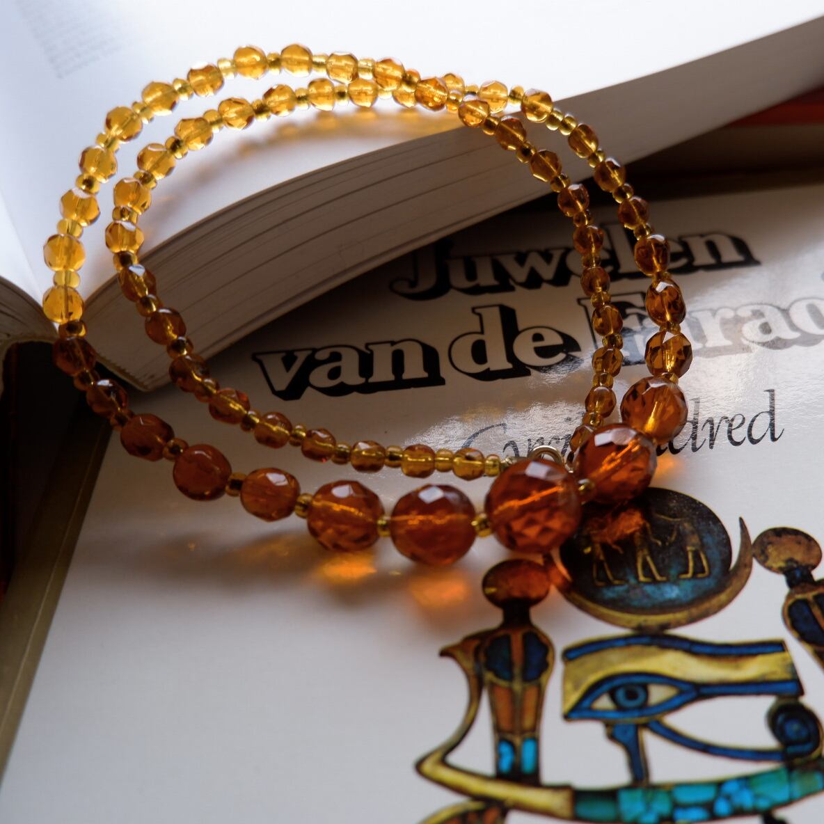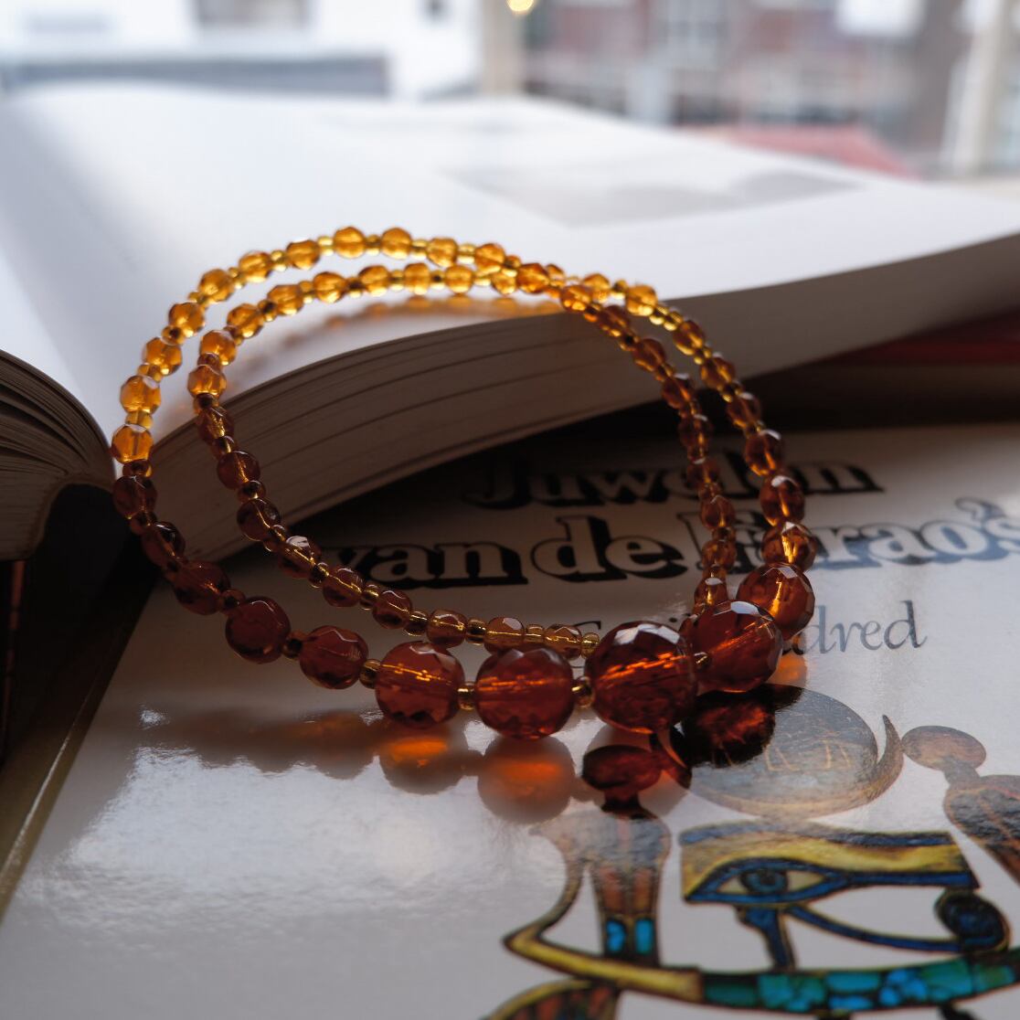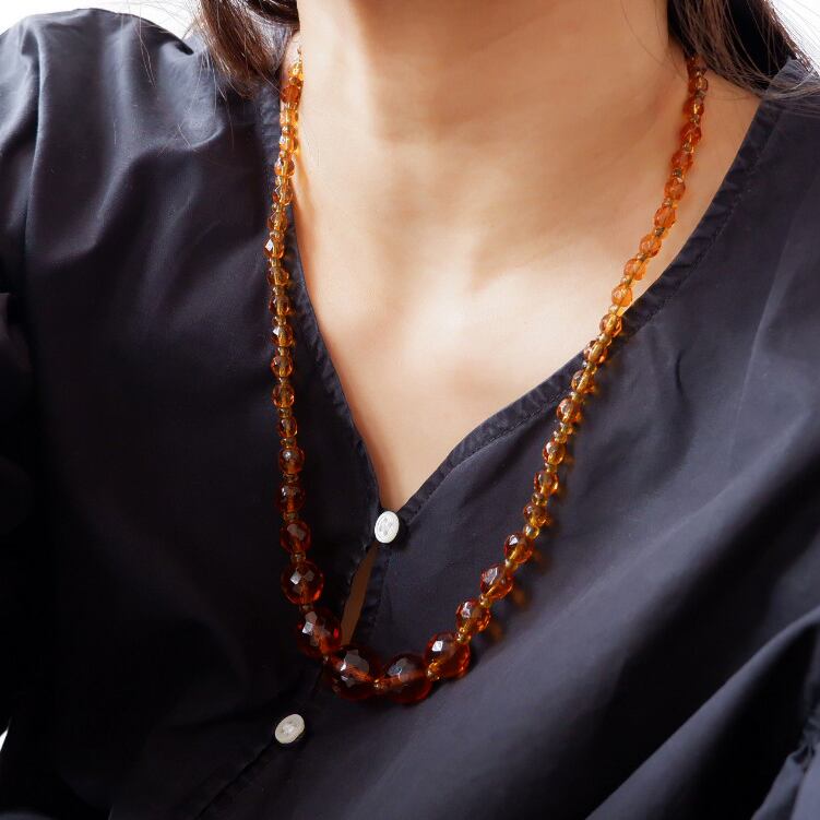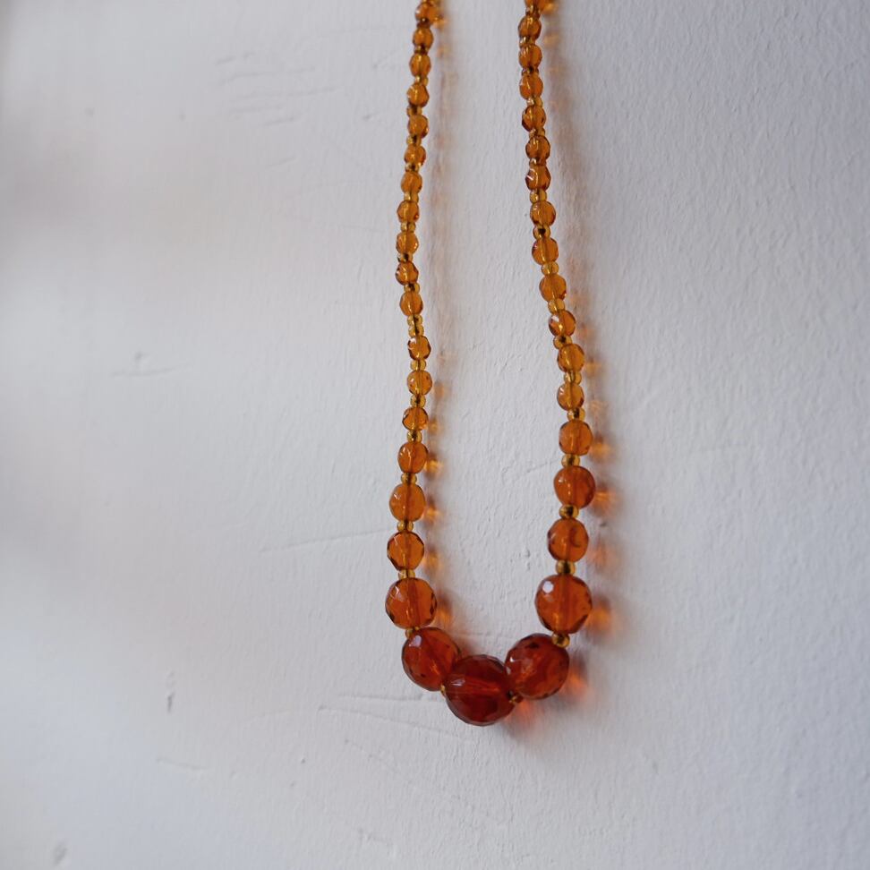 ヴィンテージガラス製のビーズネックレスです。