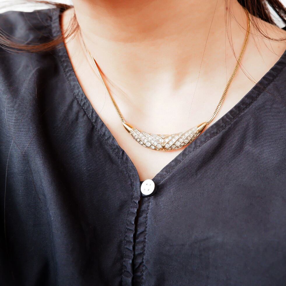 シンプルな装いに映え、一点でグッと雰囲気を高めてくれるネックレスです。