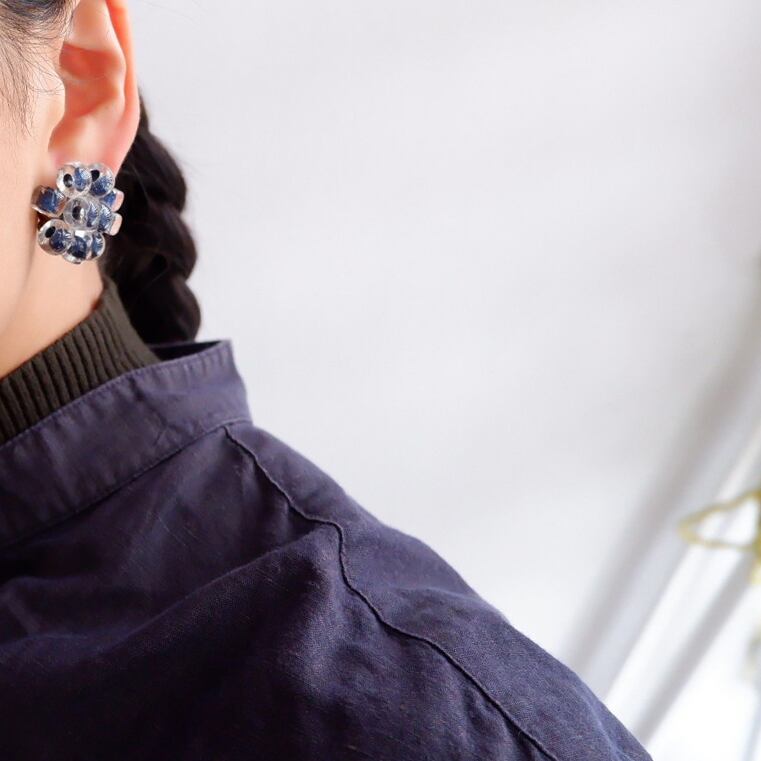 たっぷりと存在感のあるモチーフが可愛い、ヴィンテージガラス製のイヤークリップです。