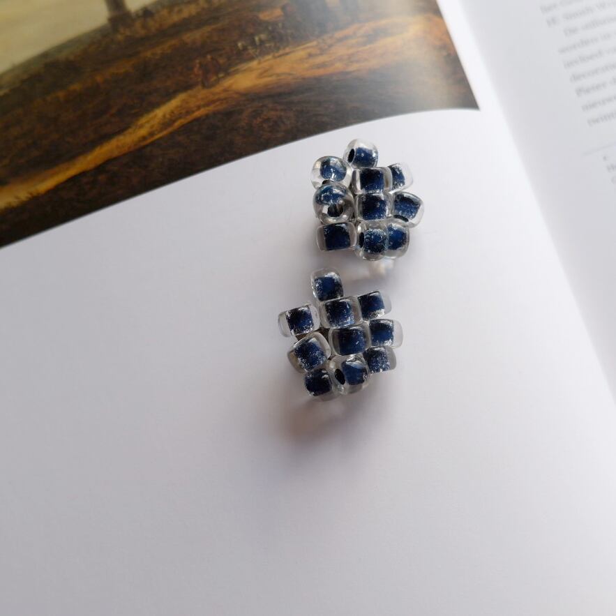 透明なモチーフの内側がネイビー色に着色されています。
