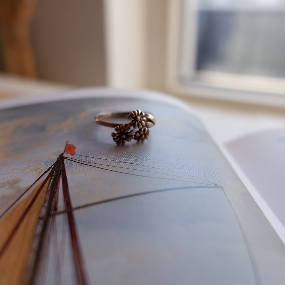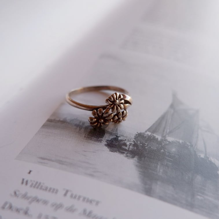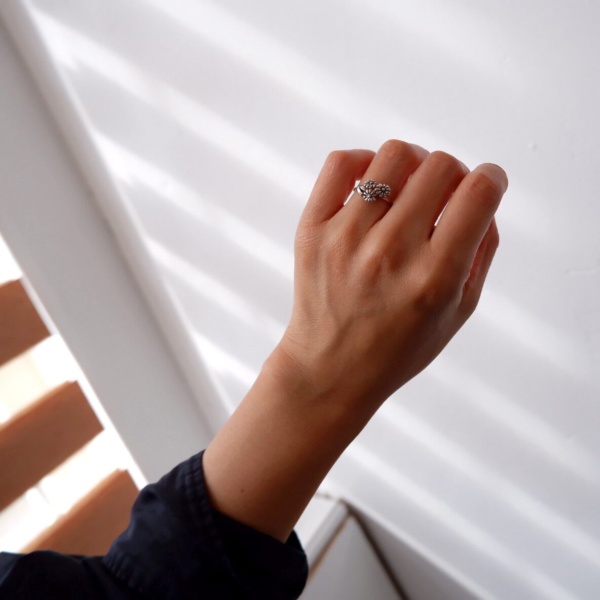 葉っぱとリングの繋がりに、ふっくら厚みのある造りが素敵。
