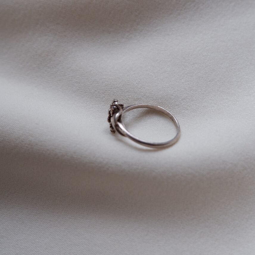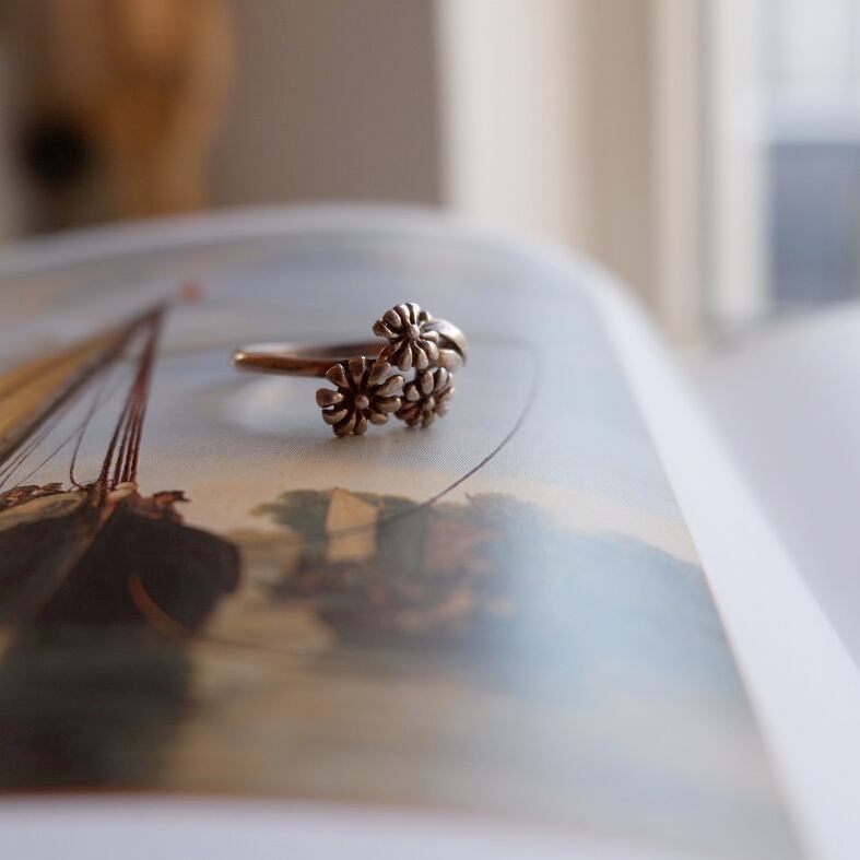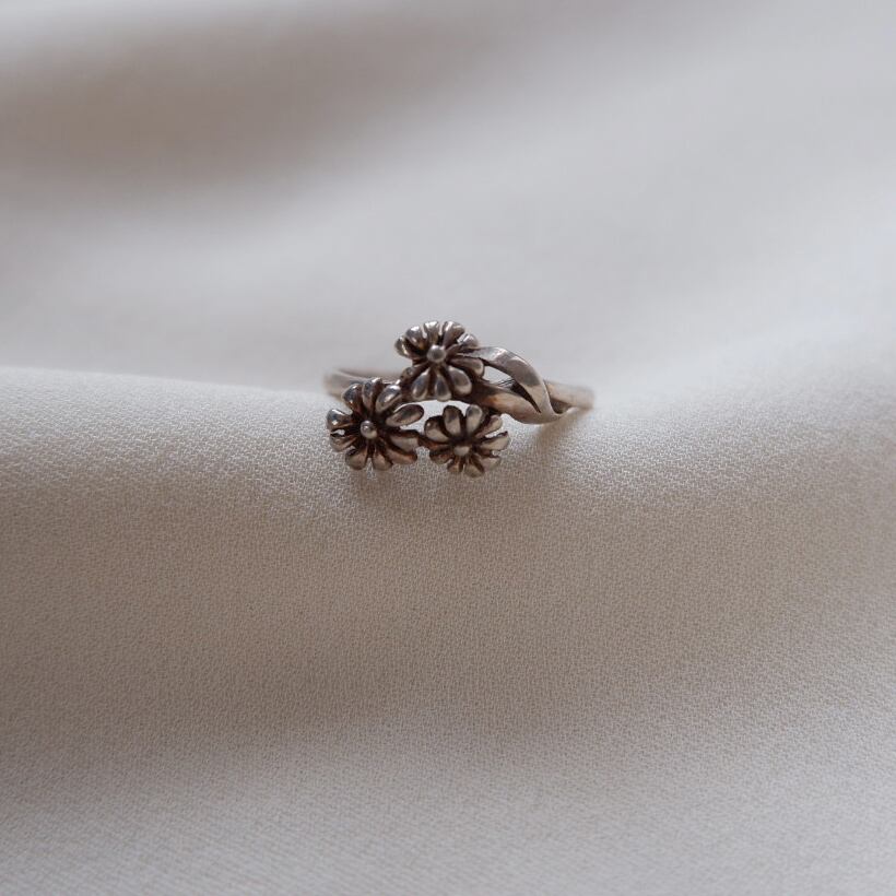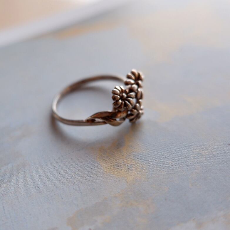 小さなお花が顔を並ばせた、愛らしいデザインの銀のヴィンテージリングです。