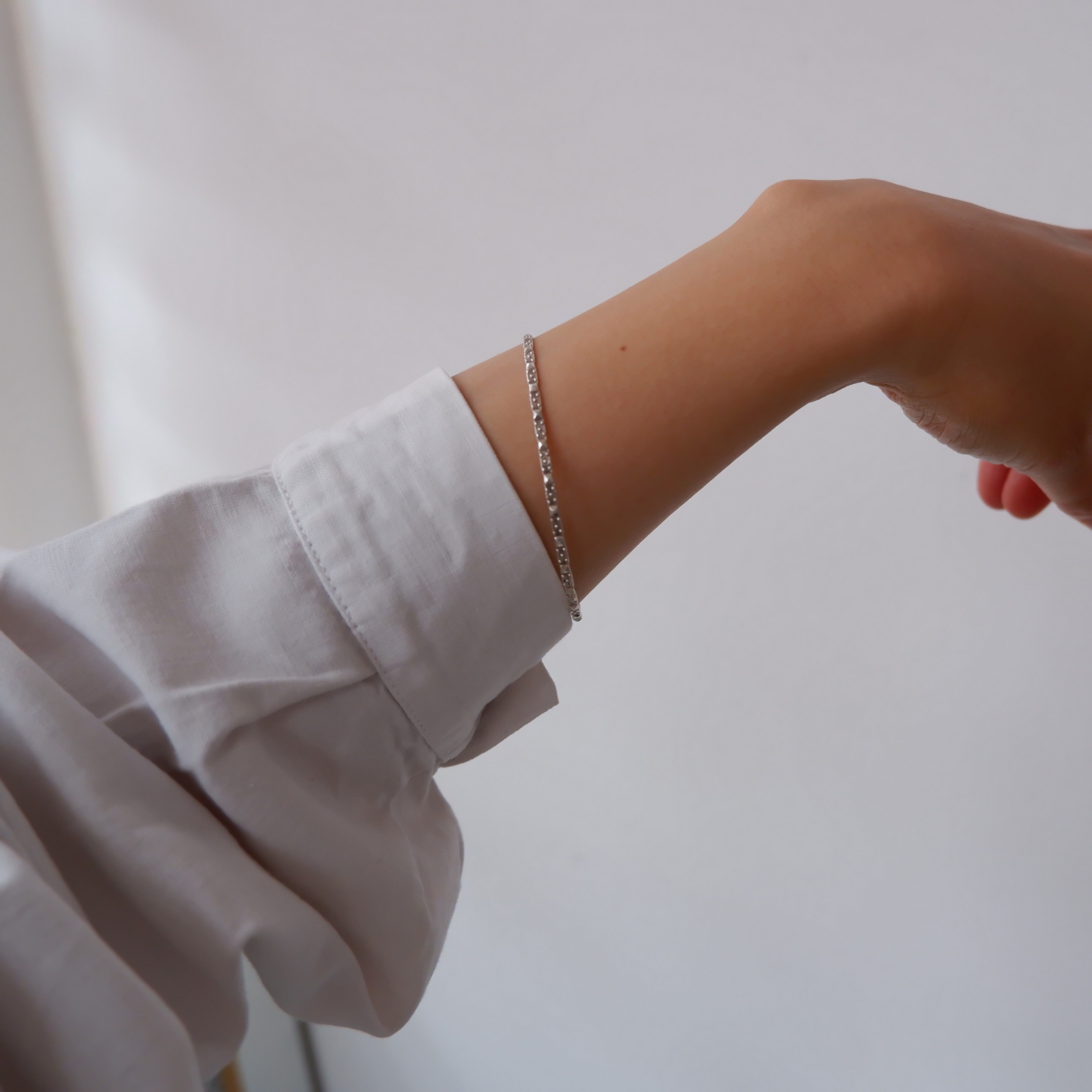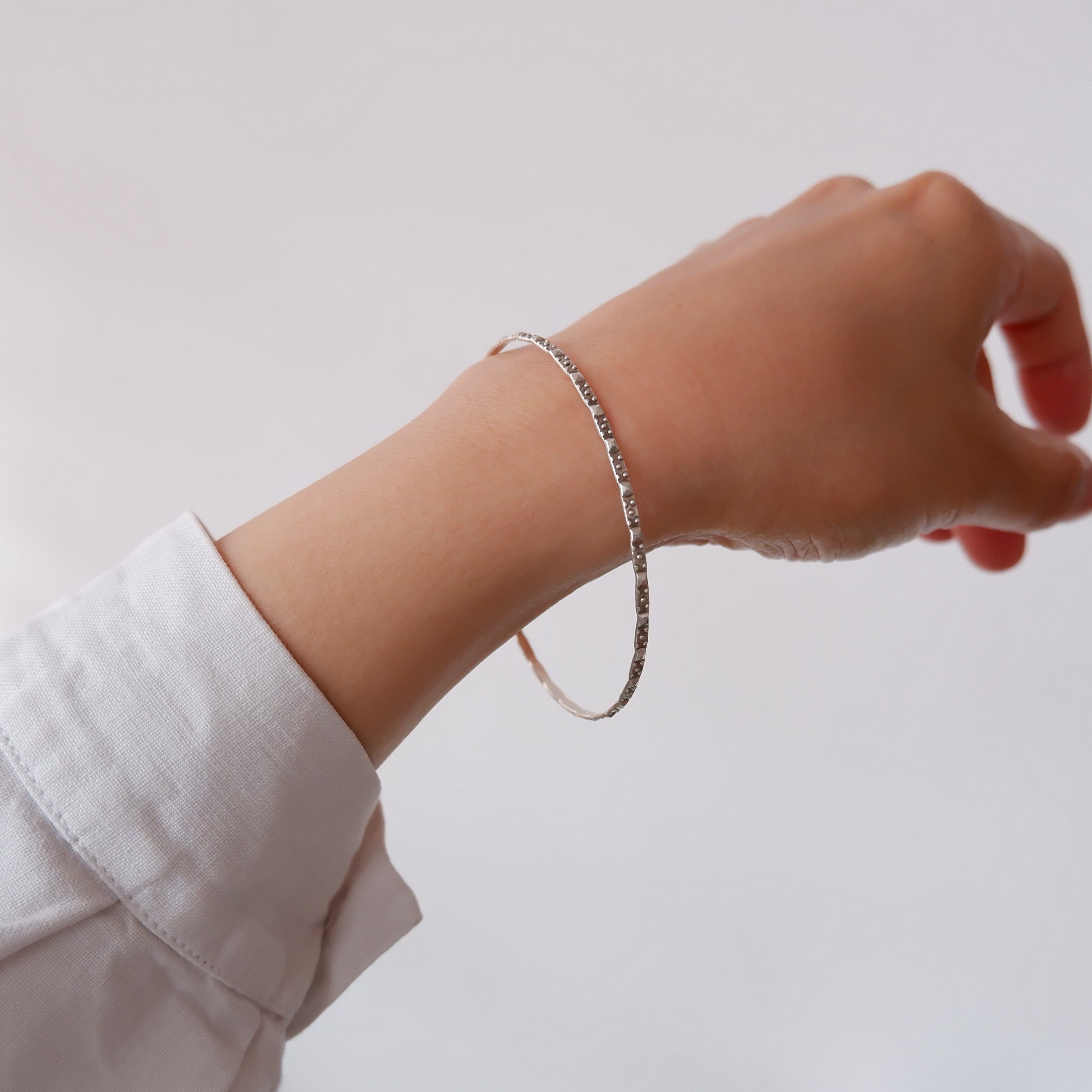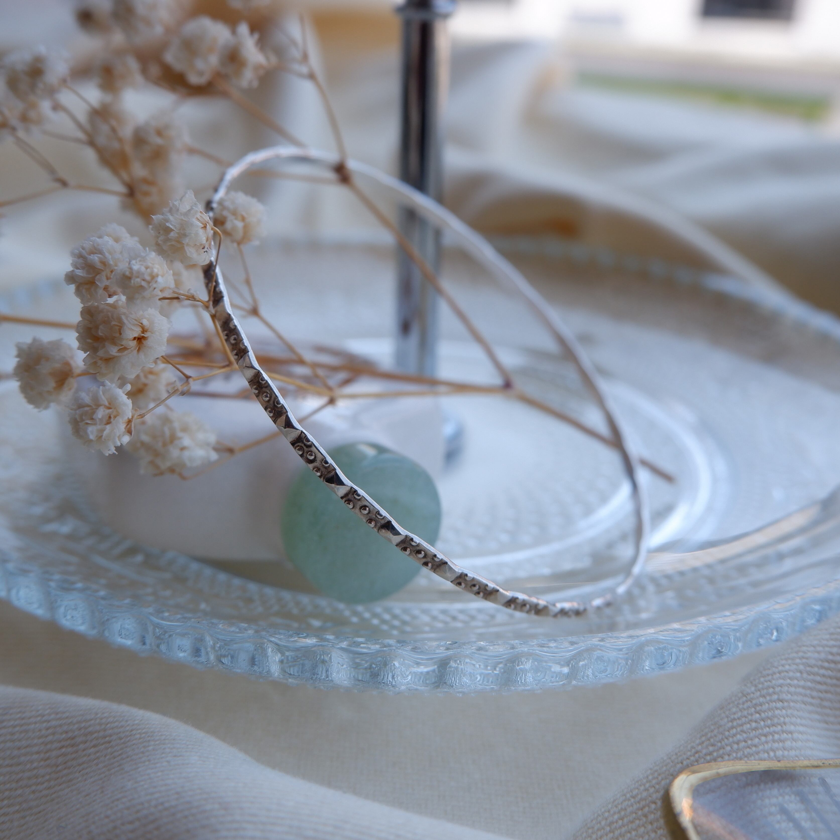 こまやかな彫金がするすると手首を移動するさまがとてもかわいいです。