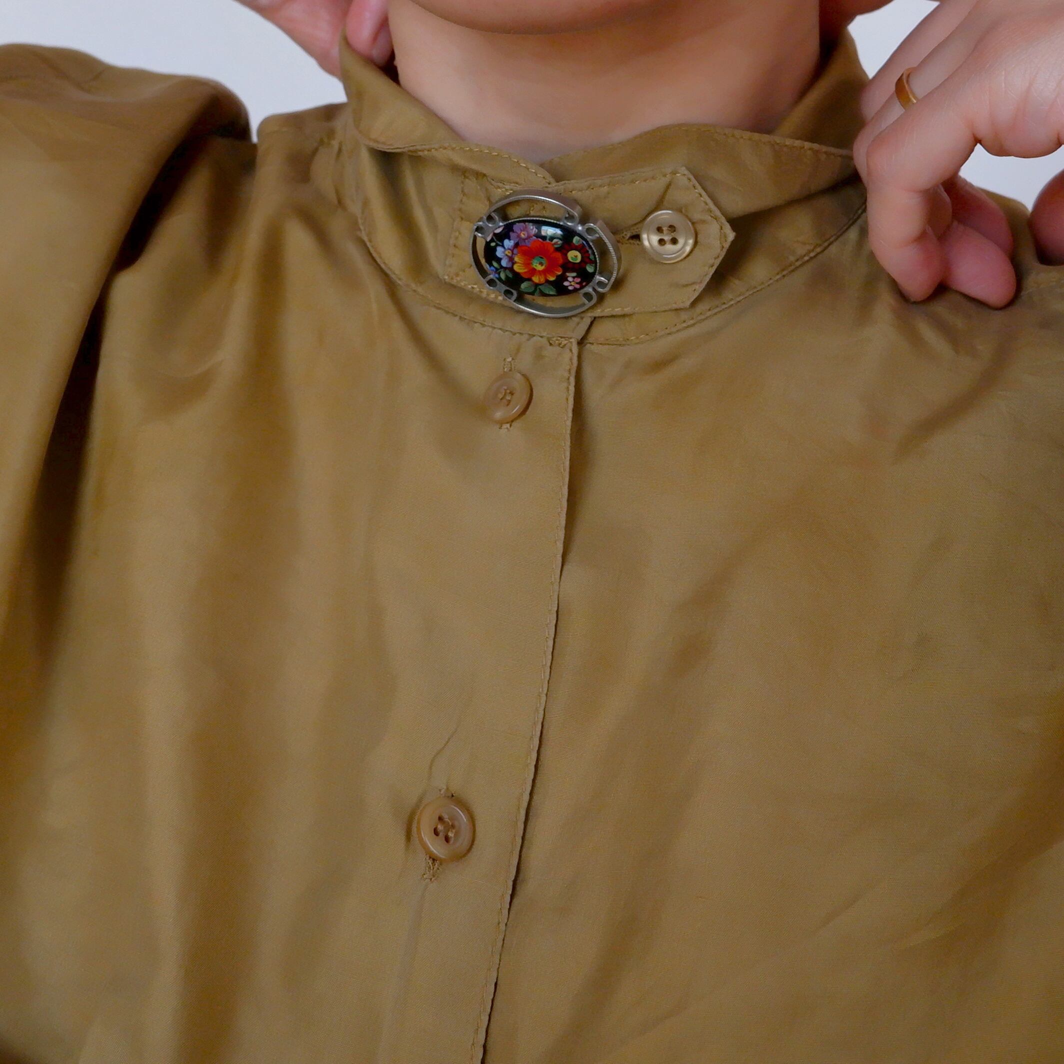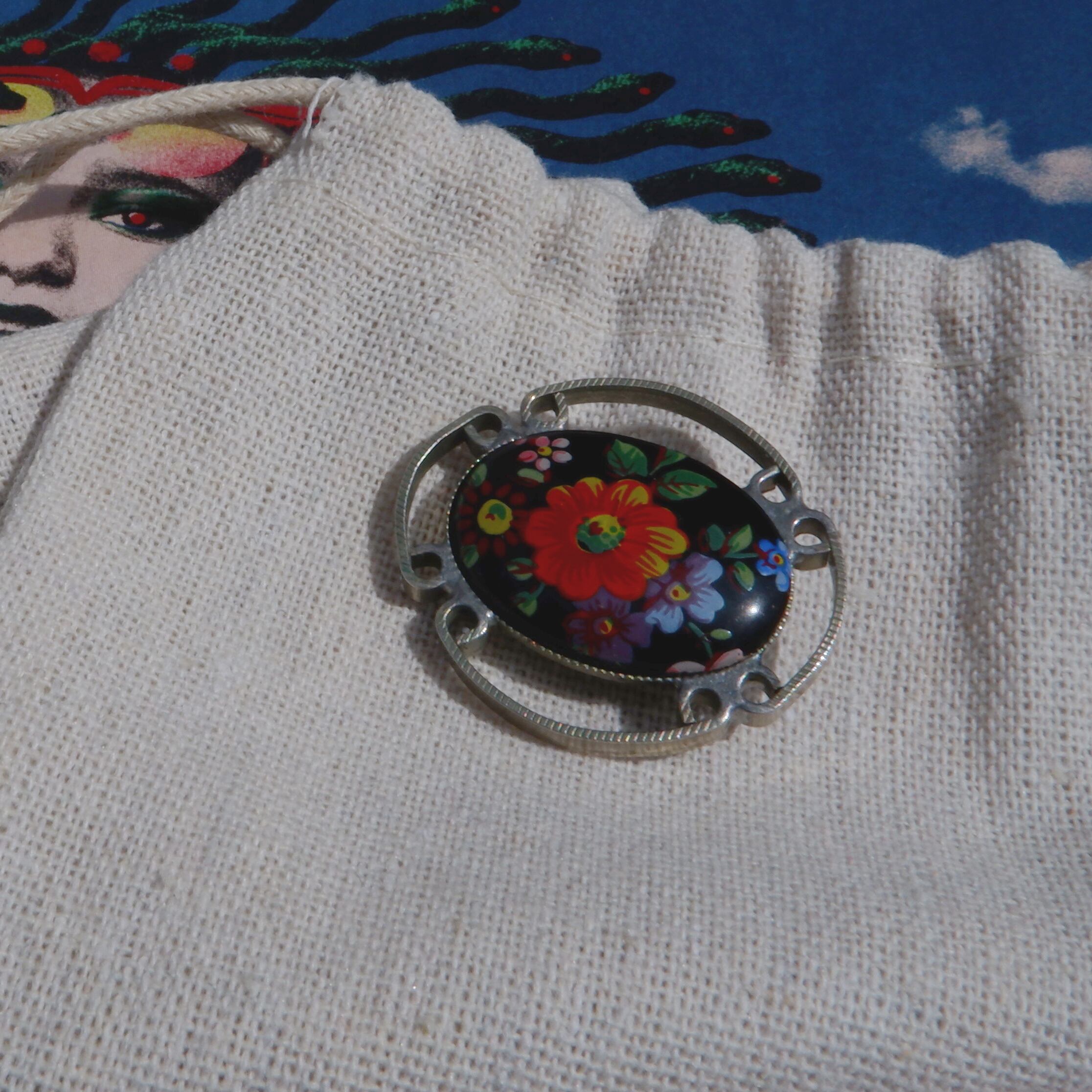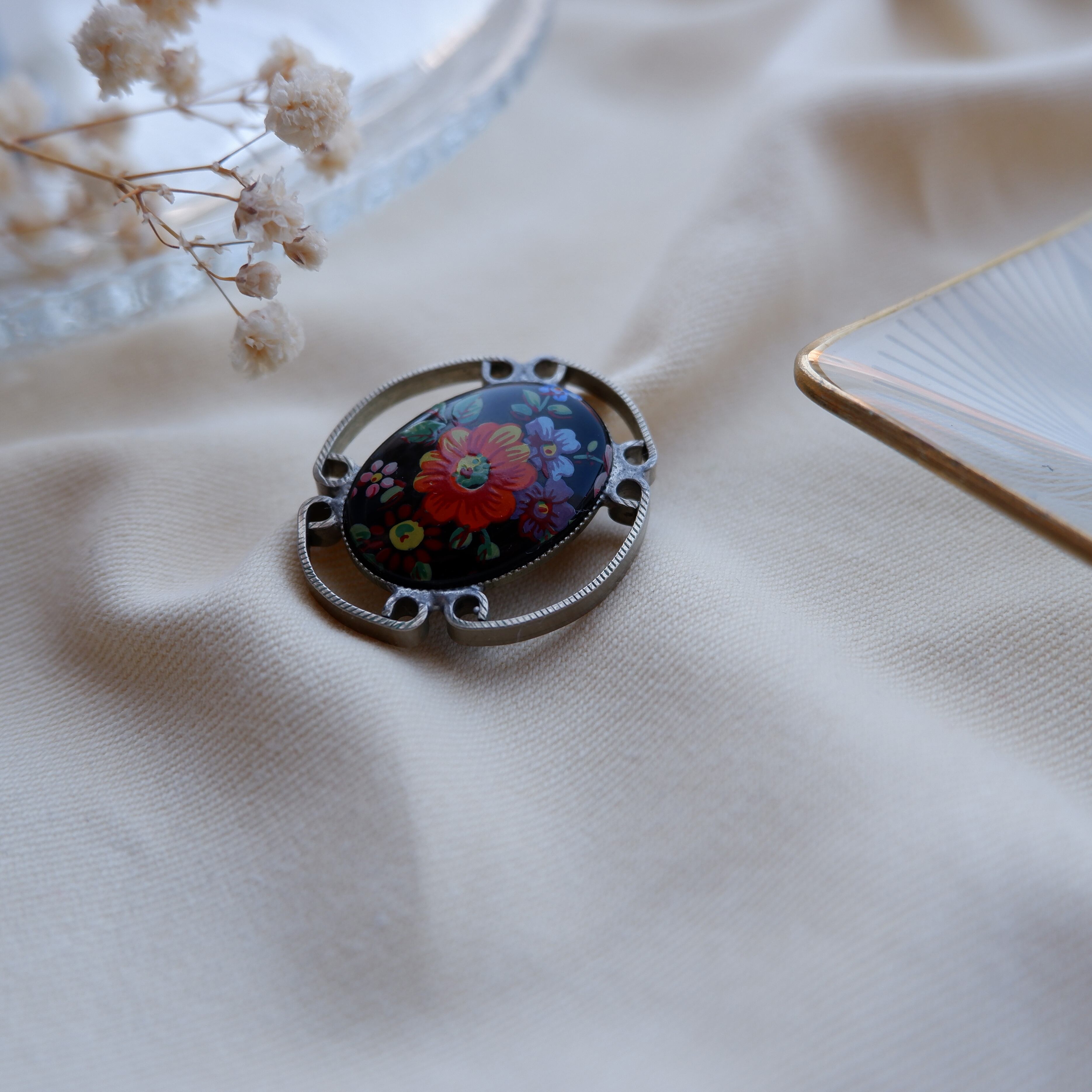 鮮やかなハンドペイントと彫金の合わせが素敵な美しいアクセサリーです。