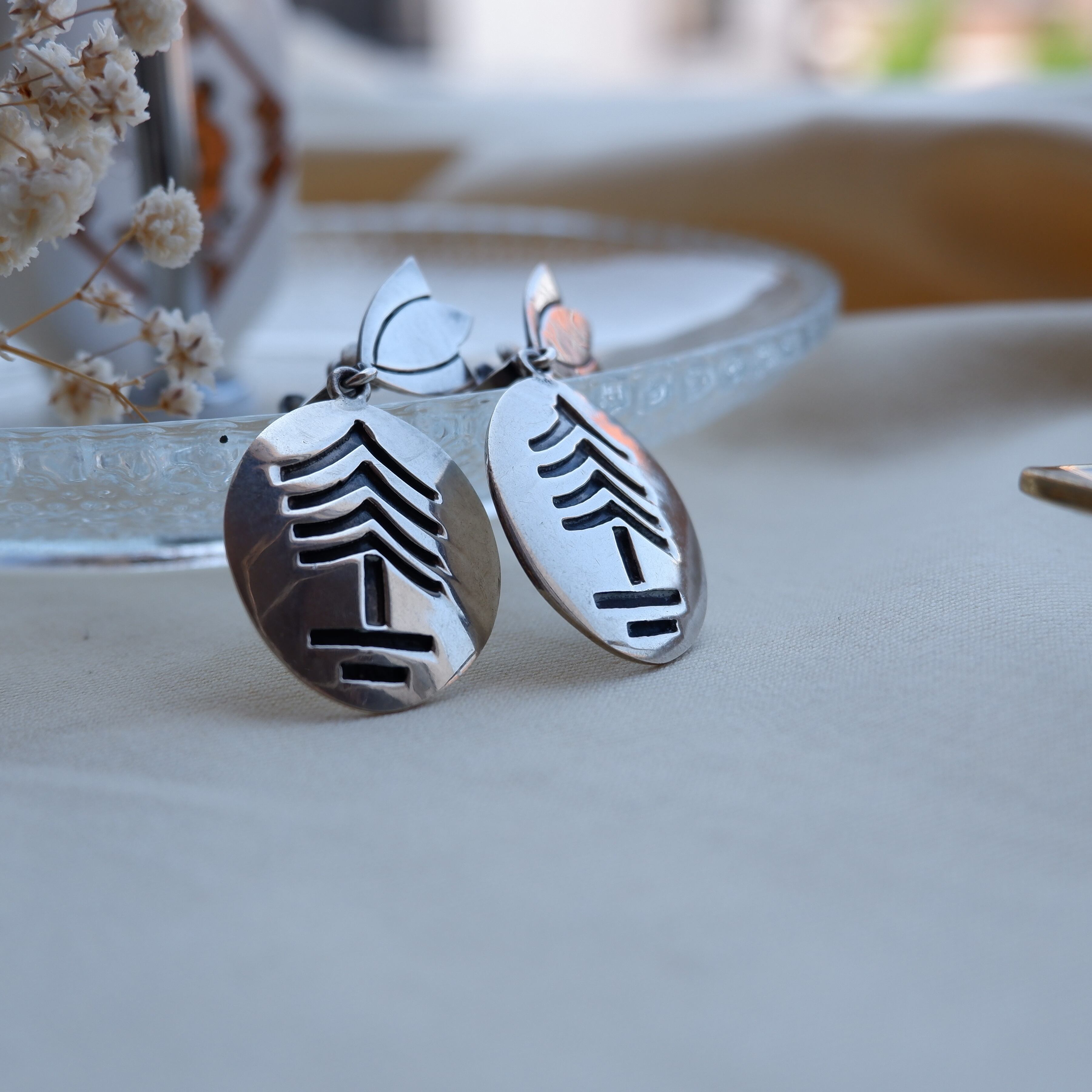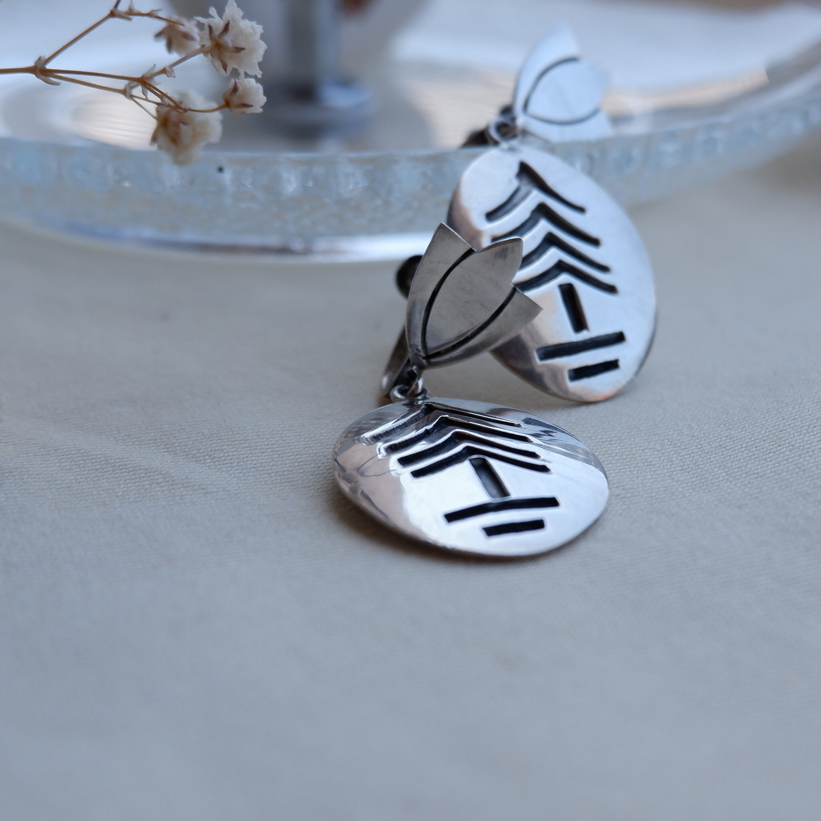 オーバルモチーフのシルバー製イヤリングです。
