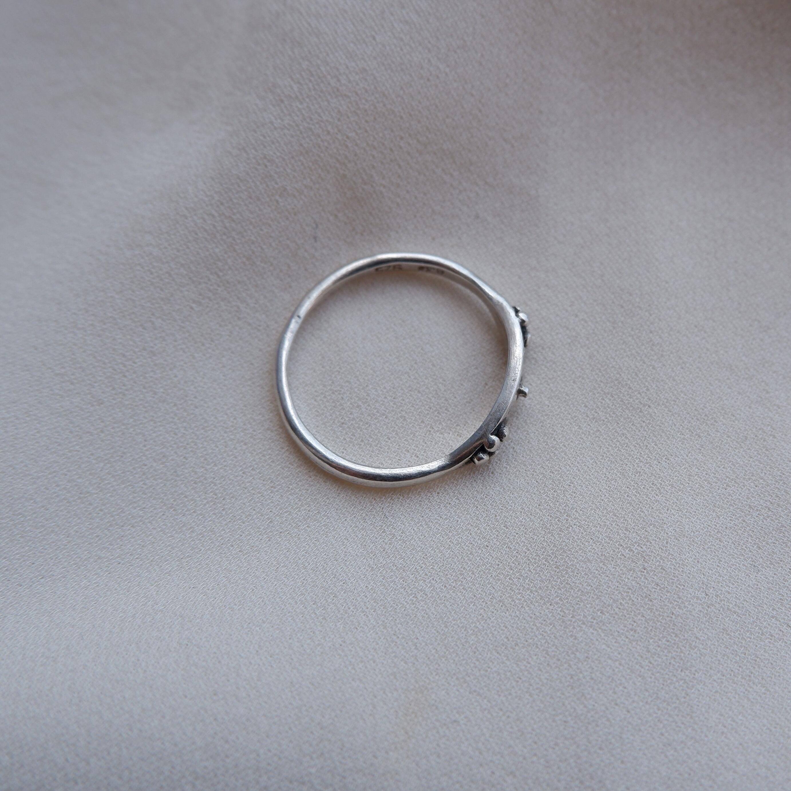 リング内側にはスターリングシルバー製であることを記す925の数字と、作者のマークと思われる「A.3」というサインが刻印されています。