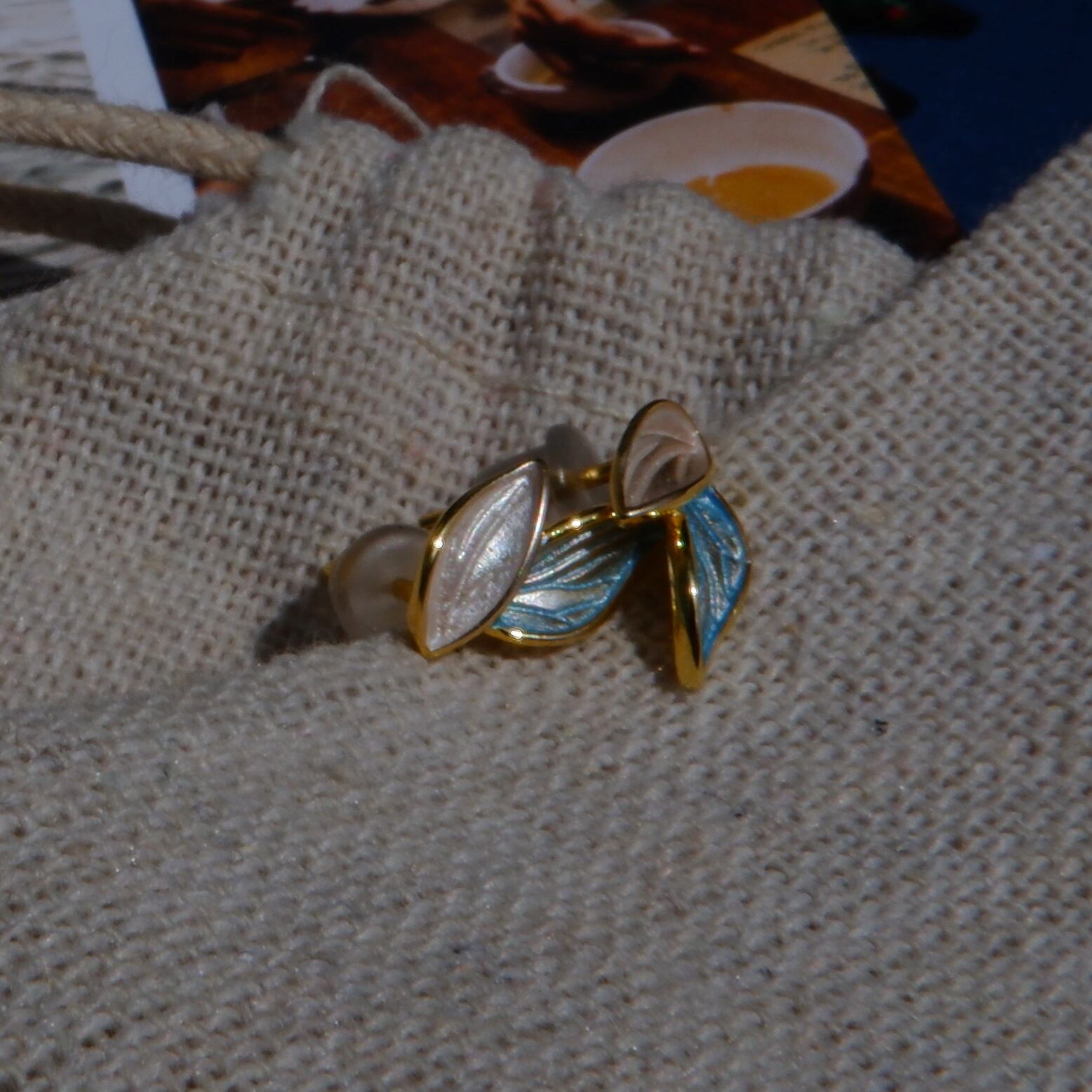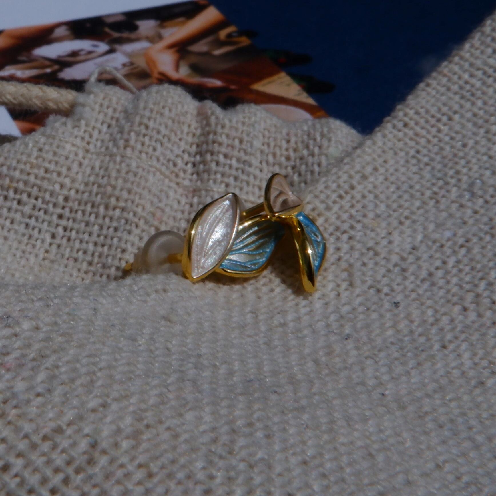 2枚の葉っぱが風に舞うようなデザインが印象的な一品です。