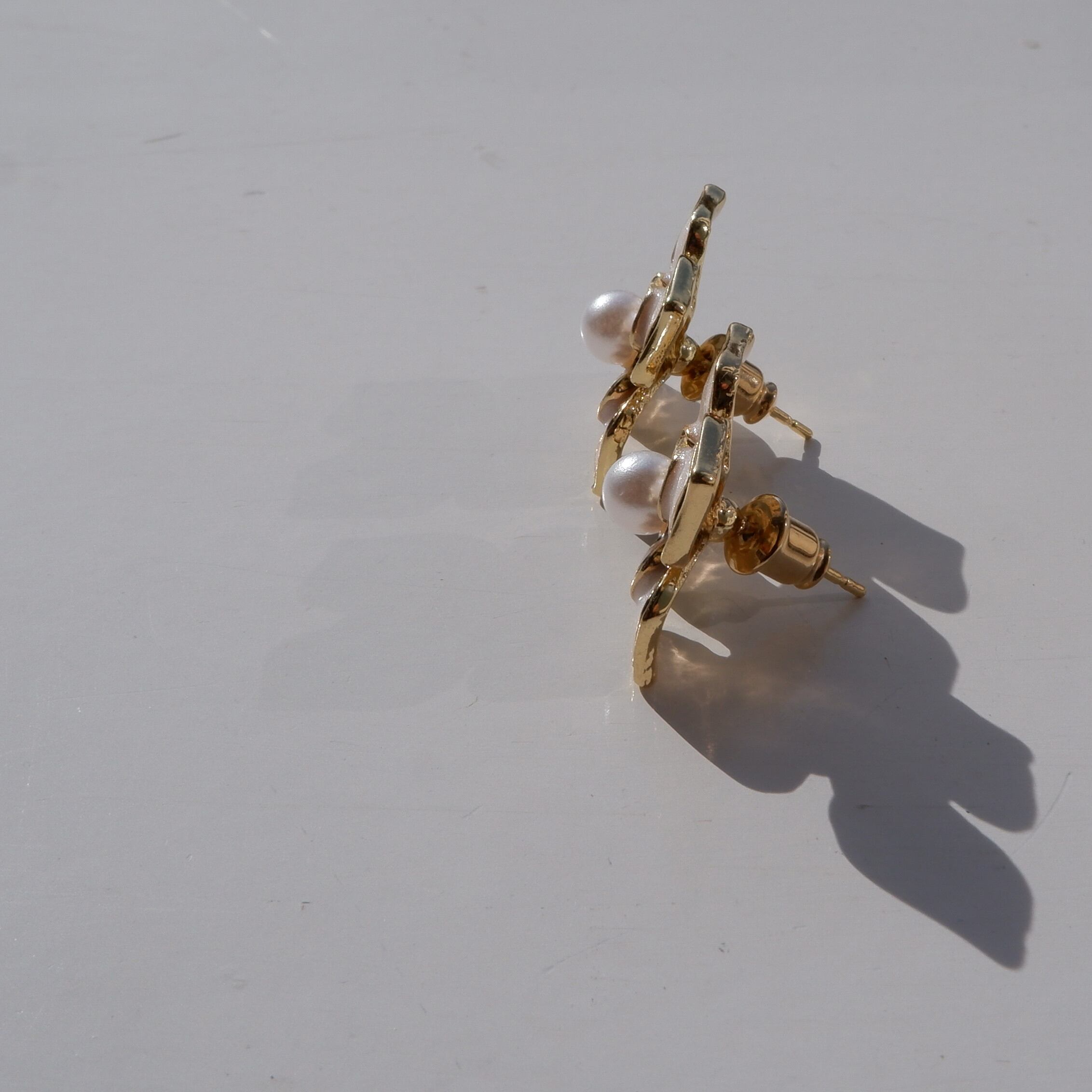 素材:スターリングシルバーにゴールドプレート・ガラスビジュー、キャッチャーは真鍮製